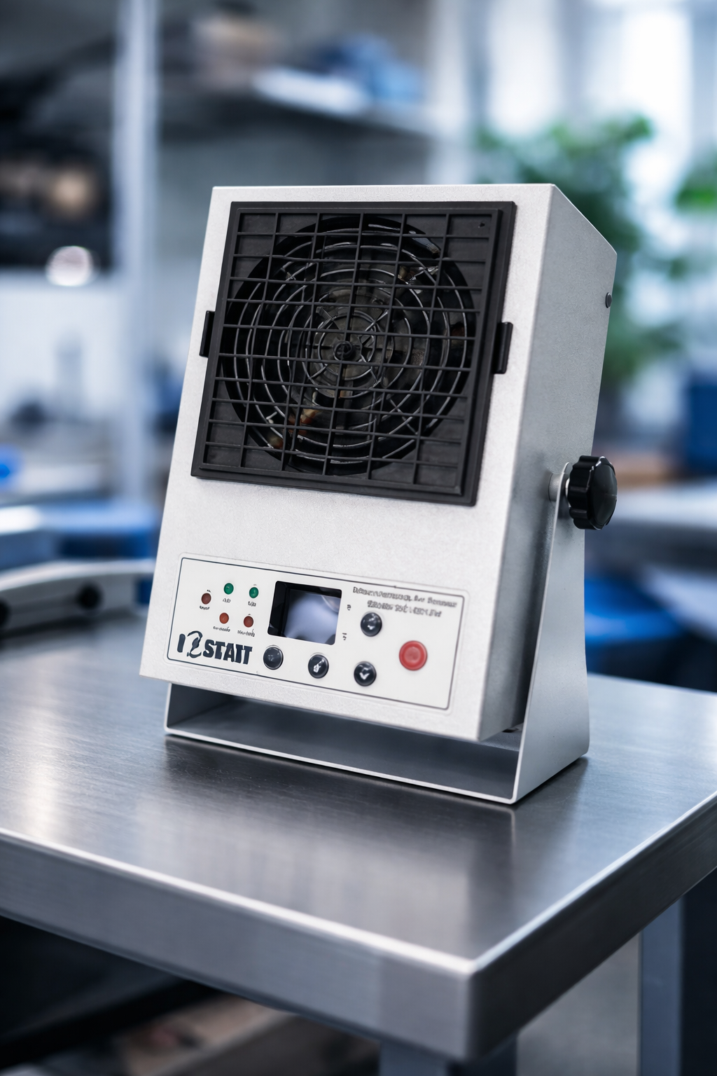 Denne ionblæser med varm luft er en enkel enhed til neutralisering af statisk elektricitet.